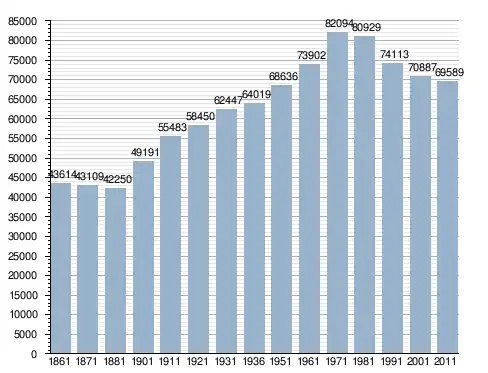 في سنة 1861 بلغ عدد السكان 43٬614 نسمة، وتطور العدد ليصل في سنة 2011 لـ 69٬589 نسمة.