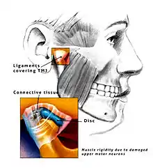 يجب معالجة المسبب للمرض مع المعالجة السنية ، المعالجة الطبيعية وأجهزة الحركات اللافعالة . إضافة إلى التحكم بالأعراض باستخدام المسكنات (الاسبرين) ، مرخيات عضلية وكمادات دافئة . تَشَظِّي كما يمكن استخدامها [10]