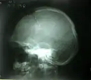 ![]() جزء من الجمجمة يظهر فيه كسر الجمجمة المنخفض جزء من الجمجمة يظهر فيه كسر الجمجمة المنخفض | |