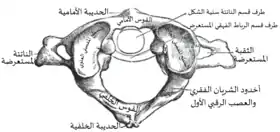 ![]() صورة للفقرة الرقبية الأولى، والتي تتأذى في كسر جيفرسون. صورة للفقرة الرقبية الأولى، والتي تتأذى في كسر جيفرسون. | |