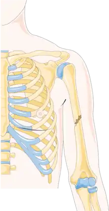 |CitationClass=تم تجاهله (مساعدة) - "Humerus Fracture (Upper Arm Fracture)". www.hopkinsmedicine.org (باللغة الإنجليزية). مؤرشف من الأصل في 16 يونيو 2020. اطلع عليه بتاريخ 20 يونيو 2019. الوسيط