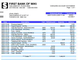مثال على كشف حساب المعاملات من مصرف خيالي.