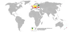 بما أن رايبس ريبريم و آر نيجرم لها موطن في شمال وشرق أوروبا، فإن العديد من مستنبتات الثمار الناضجة الكبيرة للزبيب الأحمر أُنتجت في البداية في بلجيكا وشرق فرنسا. في العصر الحديث، تم اختيار أصناف عديدة؛ بعض منها تم زراعته في الحدائق وقد يوجد في أوروبا وامتد حتى الأراضي الآسيوية.[2]