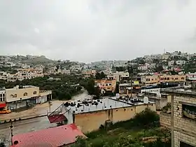 ![]() كفرالماء كما تظهر من الشارع الرئيسي المار بالبلدة | |