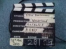 مؤشرة للقطة أو الكلاكيت (بالفرنسية: Claquette) - وتعني «الطَرق» وهي عبارة عن قطعة من الخشب عادة يتصل بأحد أطرافها ذراع خشبي يتحرك بسهولة، وله صوت مسموع عند الدق عليه.[1]ويكتب على هذه اللوحة اسم الفيلم والمخرج و المصور ورقم اللقطة وكرة التصوير.و يشير تطابق الذراع على اللوحة إلى بداية اللقطة في الصورة.
