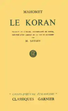 غلاف Le Koran، ترجمة سافاري للقرآن.