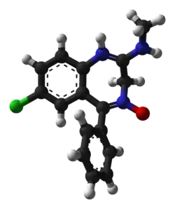 كلورديازبوكسيد Chlordiazepoxide[2] /ˌklɔərdaɪ.əzɪˈpɒksaɪd/,الاسم التجاري: ليبريوم LIBRIUM. الكلورديازيبوكسيد هو أول بنزوديزبين يتم تصنيعه وكان اكتشاف الكلورديازيبوكسيد بمحض الصدفة.[3] الكلورديازيبوكسيد وغيرها من البنزوديازيبينات قبلت في البداية بموافقة عامة على نطاق واسع لكن تابعها رفض شعبيا واسع النطاق وكانت توصياته بوضع مبادئ توجيهية طبية أكثر تقييدا لاستخدامها.[4]