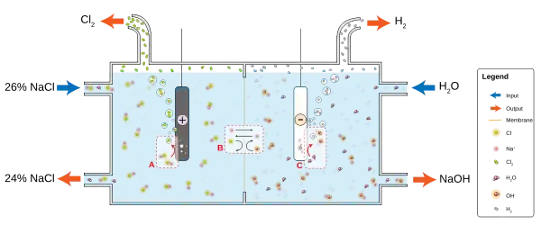 تستهلك صناعة الكلور- قلوي قسما رئيسيا من ميزانية الطاقة في العالم. هذه العملية تقوم بتحويل كلوريد الصوديوم (ملح الطعام) إلى الكلور وهيدروكسيد الصوديوم (صودا كاوية) عن طريق التحليل الكهربائي، الذان يستخدم في صناعة العديد من اللوازم والمواد الكيميائية الأخرى. وتنطوي العملية على تفاعلين كيميائيين موازيين هما: