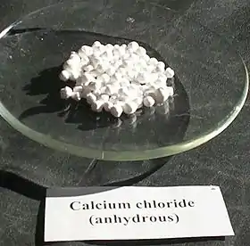 كلوريد الكالسيوم مركب كيميائي له الصيغة CaCl2 ، ويكون على شكل صلب ذي لون أبيض.