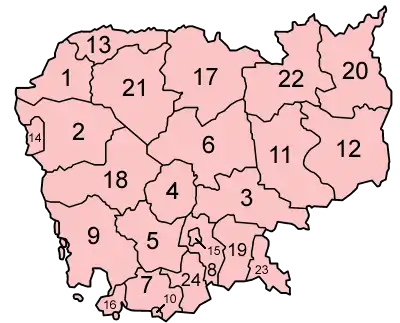 مقالة مفصلة: التقسيم الإداري لكمبوديا
