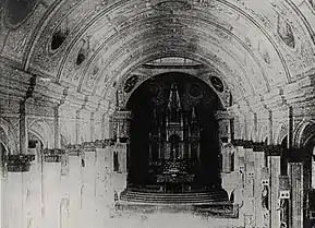 تعود تاريخ الأعمال الفنية التي تميّز بها القسم الداخلي للكنيسة إلى القرن التاسع عشر، مع لوحات فن الترمبلوي للرسامَين الإيطاليين آلبيروني وديبيلا، لكنها تعدّت جداريات فن التيمبرا الأصلي. كان للكنيسة وفرة من الممتلكات تشتمل على مذبح جميل، ومنبر الوعظ، ومنصة جوقة الترتيل. تشمل الكنيسة أجزاء شرقية على هيئة كلاب فو الصينية حول مدخل البناية أيضًا. إن مجموعة الكنائس الجانبية الصغيرة الواقعة على جهتي صحن الكنيسة هي من الأشياء المهمة بصورة خاصة، وتعزل بينها جدران تؤدي دور دعامات للحائط. السرداب الأسطواني الحجري والقبة والردهة المحدبة كلها مميزة في الفلبين، وكذلك الزخرفة التي تجسد شكل النباتات المحلية غالبًا. كان مجمع الدير مرتبطًا في ما مضى بواسطة مجموعة من الأديرة، والأروقة، والفناءات، والحدائق. عند تحرير مانيلا في عام 1945، كانت الكنيسة هي المبنى الوحيد الذي نجا في إنتراموروس.
