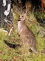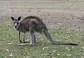 الكنغر الشرقي الرمادي (الإسم العلمي:Macropus giganteus)، هي إحدى ثدييات الجرابيات التي تقطن في شرق وجنوب أستراليا، تبلغ قامة الكناغر الرمادية الشرقية نحو 1.5 متر عندما تستريح على فخذيها، فيما يصل طولها إلى مترين تقف على أصابع قدميها، ويمكنها أن تعدو بسرعة تبلغ حتى 55 كم في ساعة في انطلاقات قصيرة يبلغ فيها مدى وثباتها طول سيارتين متوسطتي الحجم، تعيش الكناغر في الريف الجاف المكشوف، وتقتات أساساً بالعشب وتتكاثر كلما كان مخزون الغذاء جيداً . تلد إناث الكنغر صغيراً واحداً في المرة الواحدة، يسمى ولد الكنغر يقل طول ولد الكنغر عند ولادته عن 5 سم وتكون رجلاه الأماميتان فحسب كاملتي التكوين، ويحبو بين فرو جسم امه حتى يدخل جرابها ليقضي الأشهر الستة التالية، يترك صغير الكنغر الجراب بعد ذلك لكنه يعود إليه على مدار عدة أشهر إذا تهدده خطر.
