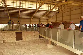 ![]() جانب من الكنيسة الأثرية داخل المجمع الكنسي في أم الرصاص. | |