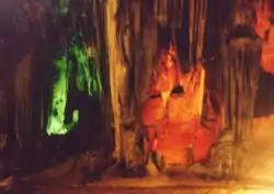 صورة لكهف كاو بن بمقاطعة راتشابوري في تايلاند، وتظهر فيه الصواعد والهوابط المتشكلة من تكلس الأملاح الذائبة في مياهه