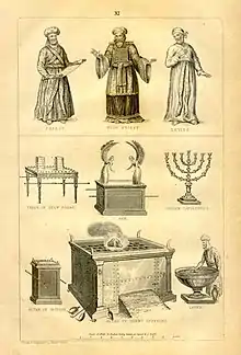 يدخل الكهن الحرم بدون أحذية، ولكن ليس عاري الرأس. و استخدام الكتان فقط للملابس الرسمية للكهن في اليهودية كما هو الحال في مصر وبابل. الصوف كان ممنوعا بسبب التعرق (سفر حزقيال 44: 17) .