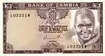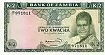 |CitationClass=تم تجاهله (مساعدة) - "Banknote: 1 Kwacha (Zambia) (1973 ND "Birth of the Second Republic" Commemorative Issue) Wor:P-16a". Colnect. الوسيط