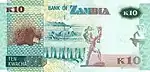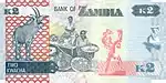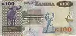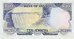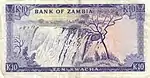 يظهر على الوجه الخلفي تمثال الحرية في لوساكا وكلمة بنك زامبيا في المنتصف في الأعلى والقيمة الاسمية للأوراق النقدية. وهناك أيضًا تصوير للحياة البرية في زامبيا، مع موضوع أخر.