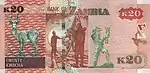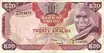 | 20 كواشا | غير متاح | غير متاح | صورة الرئيس كينيث كاوندا في الزي القبلي على اليمين. شعار زامبيا في المركز العلوي. | مبنى الجمعية الوطنية في لوساكا | الرئيس كينيث كاوندا | ||