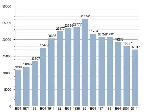 في سنة 1861 بلغ عدد السكان 10٬905 نسمة، وتطور العدد ليصل في سنة 2011 لـ 17٬017 نسمة.
