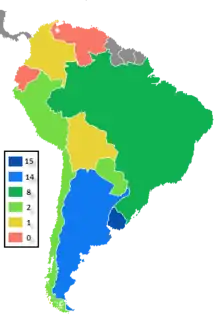 ثمانية منتخبات وطنية فازت بلقب هذه البطولة، ويعد الأوروغواي أكثر منتخب فاز بالبطولة حيث فاز 15 مرة. وأكثر دولة استضافت هذه البطولة هي الأرجنتين استضافتها 9 مرات .