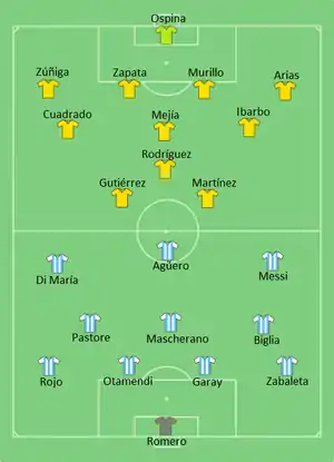 |CitationClass=تم تجاهله (مساعدة) - "Colombia pay the penalty as Argentina go through to semi-finals". Copa América Chile 2015. 26 June 2015. مؤرشف من الأصل في 28 يونيو 2015. الوسيط
