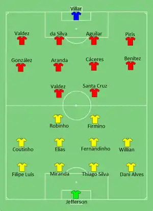 |CitationClass=تم تجاهله (مساعدة) - "Paraguay stun Brazil on penalties to set up Argentina semi-final". Copa América Chile 2015. 27 June 2015. مؤرشف من الأصل في 29 يونيو 2015. الوسيط