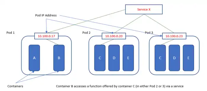 يتم تعيين عنوان Pod Pod فريد لكل كتلة في كوبيرنيتيس داخل المجموعة، مما يسمح للتطبيقات باستخدام المنافذ دون التعرض لخطر التعارض.[20] داخل الحاوية، يمكن لجميع الحاويات أن تشير إلى بعضها البعض على المضيف المحلي، ولكن الحاوية داخل الحافظة لا تملك أي وسيلة للتعامل مباشرة مع حاوية أخرى داخل حافظة أخرى ؛ لذلك، يجب عليه استخدام عنوان IP Pod. يجب على مطور التطبيق ألا يستخدم عنوان بروتوكول الإنترنت (Pod IP) أبدًا للإشارة إلى / استدعاء قدرة في جراب آخر، لأن عناوين بروتوكول الإنترنت (بروتوكول الإنترنت) هي سريعة الزوال - قد يتم تعيين جراب معين يشيرون إليه إلى عنوان IP آخر لجهاز iPod عند إعادة التشغيل. بدلاً من ذلك، يجب عليهم استخدام إشارة إلى الخدمة، التي تحتوي على إشارة إلى جراب الهدف على عنوان IP Pod.