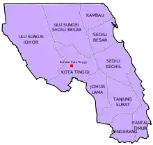 كوتا تينجي أو كوتا تيغكي هي مدينة وعاصمة مدرية كوتا تينجي في جوهر بماليزيا، وتقع على بعد حوالي 42 كيلومترًا شمال شرق جوهر بهرو. كوالا سيديلي أو تانجونج سيديلي، بلدة صيد صغيرة تقع على بعد 37 كم شمال شرق مدينة كوتا تينجي، وهي ثاني أكبر ميناء للصيد في الساحل الشرقي لشبه جزيرة ماليزيا.