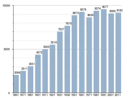في سنة 1861 بلغ عدد السكان 2٬066 نسمة، وتطور العدد ليصل في سنة 2011 لـ 9٬182 نسمة.