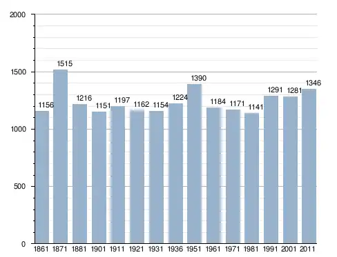 في سنة 1861 بلغ عدد السكان 1٬156 نسمة، وتطور العدد ليصل في سنة 2011 لـ 1٬346 نسمة.