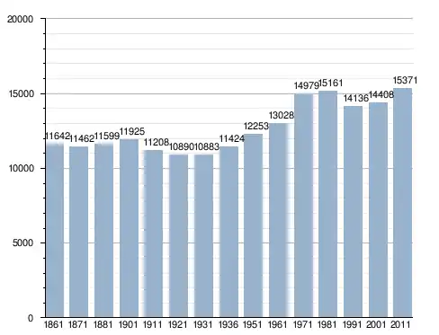 في سنة 1861 بلغ عدد السكان 11٬642 نسمة، وتطور العدد ليصل في سنة 2011 لـ 15٬371 نسمة.