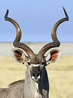 الكَوْدُ الأَكْبَرُ[4] (بالإنجليزية: Greater kudu) (باللاتينية: Tragelaphus strepsiceros) . وهو من ظباء الغابات الموجودة في جميع أنحاء شرق أفريقيا وجنوبها كودو ألكبير يكون جسمه نحيل مع سيقان طويلة اللون رمادي إلى البني المحمر. انها تملك ما بين 4- 12 من الخيوط ألبيض العمودية على طول الجذع. الرأس يميل إلى أن يكون أكثر قتامة في اللون من باقي الجسم ظبيٌ الكودو يقطنُ المناطق الحرجية في أفريقيا، ويعد من أكبر الظباء في العالم إذ يبلغ ارتفاع كتفيه عن الأرض حوالي 5,1 متراً، وهو بلون بني مائل إلى اللون الأحمر أو بلون رمادي شاحب مع خطوط بيضاء على الجانبين وللذكر قرنان لولبيان طويلان قد يبلغ طول كل منهما متراً واحداً أما الانثى فهي بدون قرون. يقتات الكودو بالأوراق والثمار والحشائش اسمه يبلغ وزن الذكور 190- 270 كغم وكحد أقصى من 315 تزن الإناث120- 150 كغ.