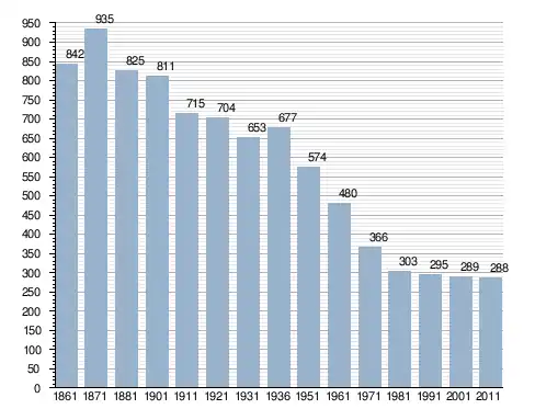 في سنة 1861 بلغ عدد السكان 842 نسمة، وتطور العدد ليصل في سنة 2011 لـ 288 نسمة.