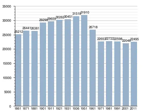 في سنة 1861 بلغ عدد السكان 25٬212 نسمة، وتطور العدد ليصل في سنة 2011 لـ 22٬495 نسمة.