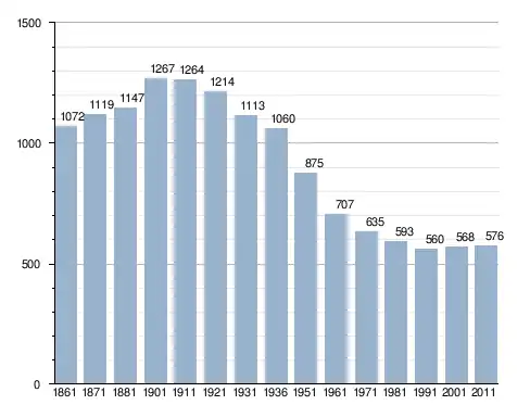 في سنة 1861 بلغ عدد السكان 1٬072 نسمة، وتطور العدد ليصل في سنة 2011 لـ 576 نسمة.
