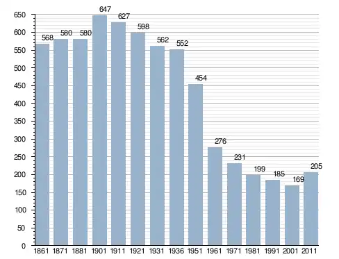 في سنة 1861 بلغ عدد السكان 568 نسمة، وتطور العدد ليصل في سنة 2011 لـ 205 نسمة.