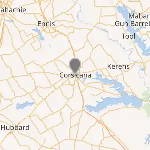 كورسيكانا (بالإنجليزية: Corsicana, Texas) هي مدينة تقع بولاية تكساس في شمال شرق الولايات المتحدة. تبلغ مساحة هذه المدينة 56.2 (كم²)، وترتفع عن سطح البحر 135 م، بلغ عدد سكانها 23770 نسمة في عام 2010 حسب إحصاء مكتب تعداد الولايات المتحدة وتصل الكثافة السكانية فيها 404.8 نسمة/كم2.[5]