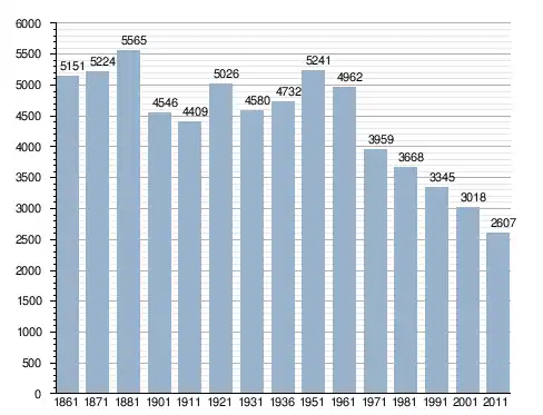في سنة 1861 بلغ عدد السكان 5٬151 نسمة، وتطور العدد ليصل في سنة 2011 لـ 2٬607 نسمة.