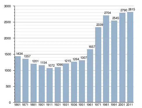 في سنة 1861 بلغ عدد السكان 1٬434 نسمة، وتطور العدد ليصل في سنة 2011 لـ 2٬815 نسمة.