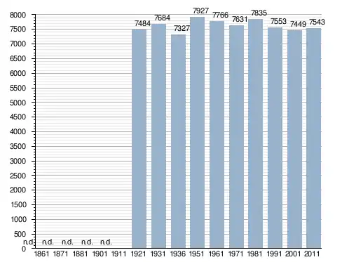 في سنة 1871 بلغ عدد السكان نسمة، وتطور العدد ليصل في سنة 2011 لـ 7٬543 نسمة.