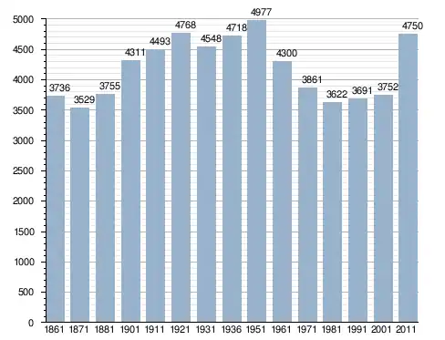 في سنة 1861 بلغ عدد السكان 3٬736 نسمة، وتطور العدد ليصل في سنة 2011 لـ 4٬750 نسمة.
