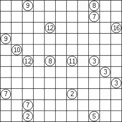 - كل رقم في مربع أبيض يمثل عدد الخانات البيضاء التي يمكن رؤيتها من هذا المربع (بما فيه هذا المربع نفسه), يمكن رؤية خانة بيضاء من خانة أخرى بيضاء إذا كانوا في نفس الصف أو العمود, ولا توجد خانات سوداء بينهم في هذا الصف أو العمود.