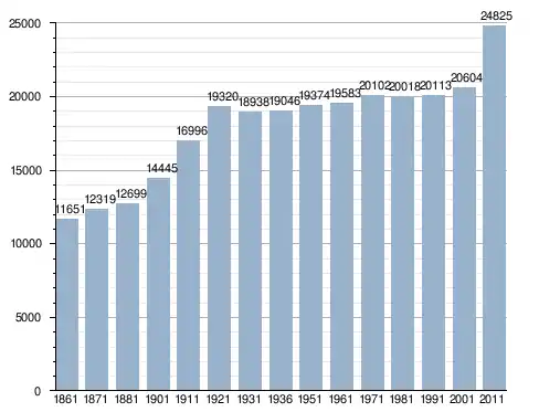 في سنة 1861 بلغ عدد السكان 11٬651 نسمة، وتطور العدد ليصل في سنة 2011 لـ 24٬825 نسمة.