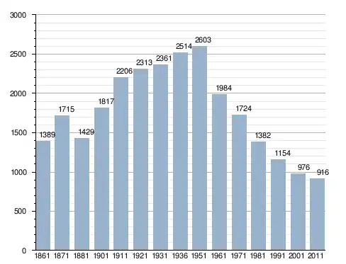في سنة 1861 بلغ عدد السكان 1٬389 نسمة، وتطور العدد ليصل في سنة 2011 لـ 916 نسمة.