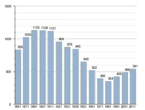 في سنة 1861 بلغ عدد السكان 836 نسمة، وتطور العدد ليصل في سنة 2011 لـ 541 نسمة.
