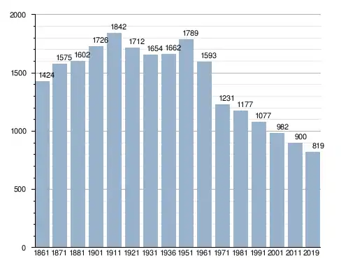 في سنة 1861 بلغ عدد السكان 1٬424 نسمة، وتطور العدد ليصل في سنة 2019 لـ 819 نسمة.