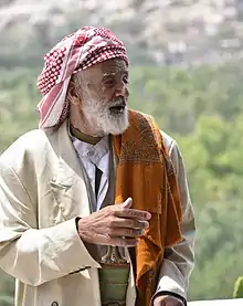 ![]() الرئيس الفلسطيني الراحل ياسر عرفات الذي اشتهر بارتداه الكوفية البيضاء | ||