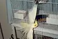 بينما الذكر يكون الريش بلون واحد منسجم إما الأبيض أو الأصفر.