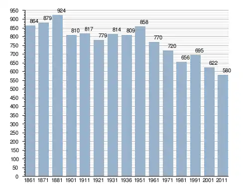 في سنة 1861 بلغ عدد السكان 864 نسمة، وتطور العدد ليصل في سنة 2011 لـ 580 نسمة.
