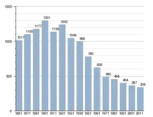 في سنة 1861 بلغ عدد السكان 1٬017 نسمة، وتطور العدد ليصل في سنة 2011 لـ 339 نسمة.